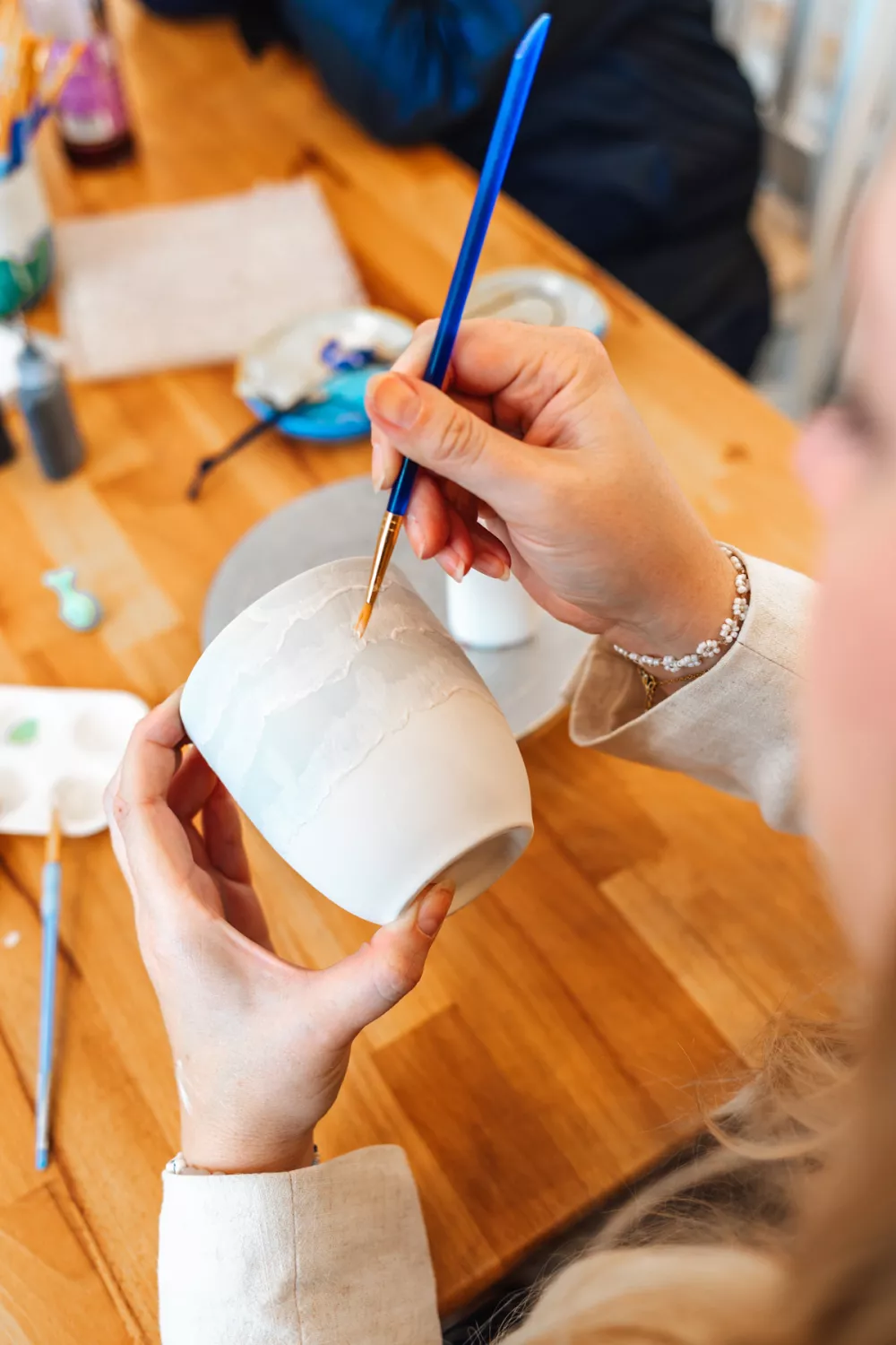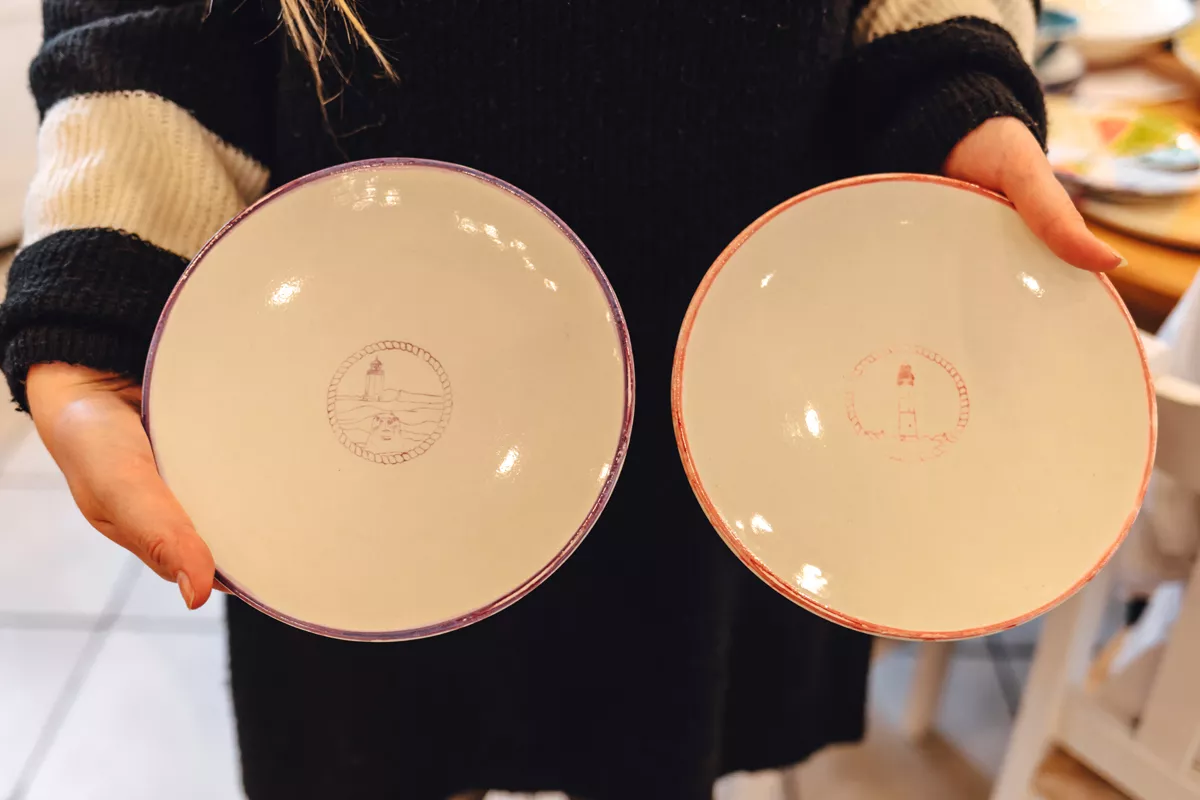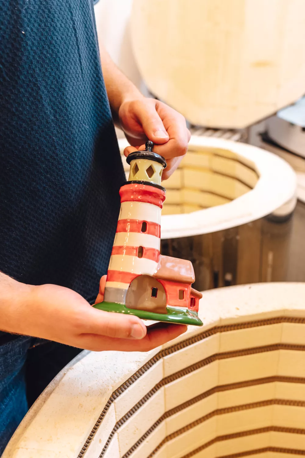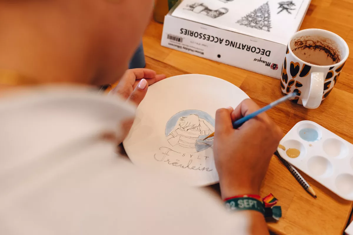 Im Atelier kannst du dir aus einer riesigen Auswahl deine Lieblingsrohkeramik aussuchen: Tassen, Teller, Schalen, Vasen oder maritime Figuren. Im ausgezeichneten Preis sind dann alle Materialien inkludiert. Ganz neu sind Schablonen von allen Sylter Leuchttürmen. Die Technik? Kinderleicht! Ob frei malen, mit Schablonen, Stempeln oder der lustigen „Blubbertechnik“ – du kannst dich kreativ austoben. Danach wird dein Werk glasiert und gebrannt, und schon ein, zwei Tage später hältst du dein persönliches Sylt-Souvenir in den Händen.
