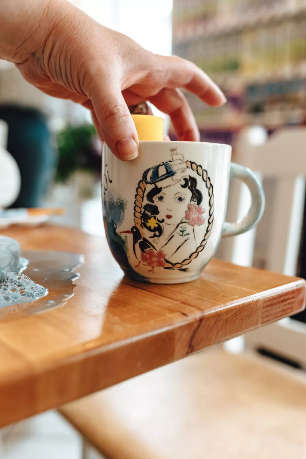 Übrigens: Getränke gibt es auch im Atelier – mein persönlicher Tipp ist eine heiße Tasse Kakao. Gerade an schmuddeligen Tagen einfach himmlisch!