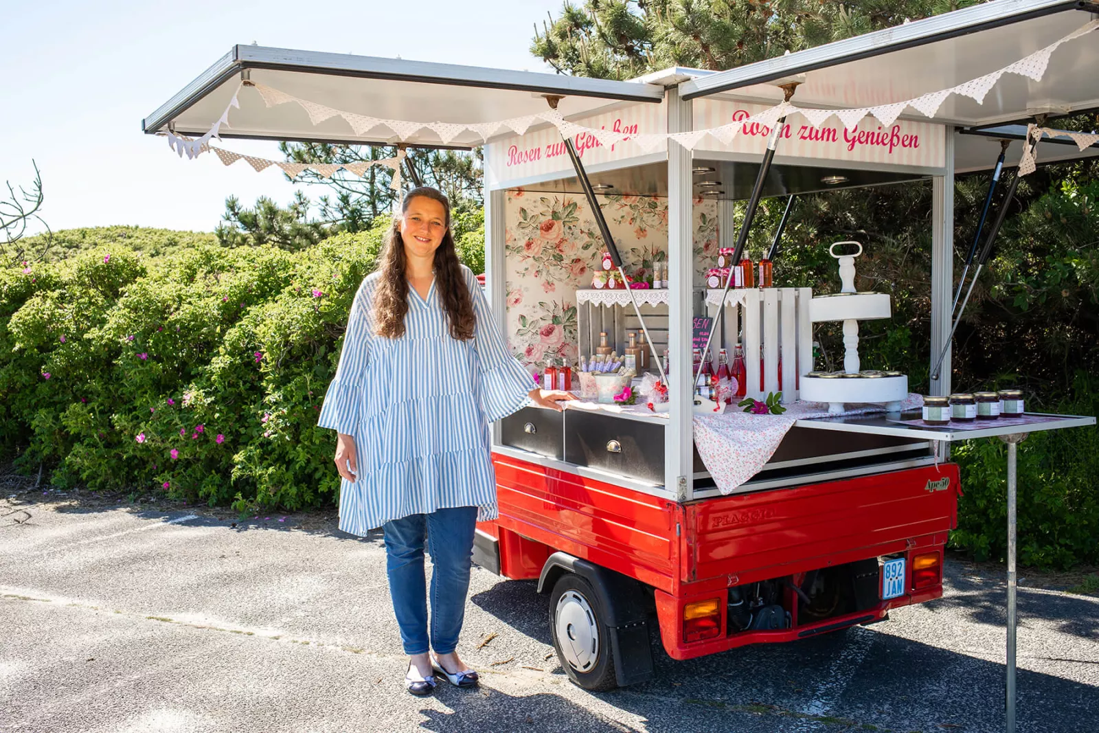 Hach, was war das für ein schöner Nachmittag mit der lieben Mareike. Ich freue mich so sehr darüber, einen Einblick hinter die Kulissen ihrer rosigen Produkte bekommen zu haben. Und darüber, den herrlichen Duft von Sylter Heckenrosen noch lange mit mir rumzutragen. Wenn du also das nächste Mal auf der Insel bist, halte unbedingt Ausschau nach Mareike und ihrem putzigen roten Piaggio Ape und tauche ab in die Rosenwelt der Sylt-Mari.