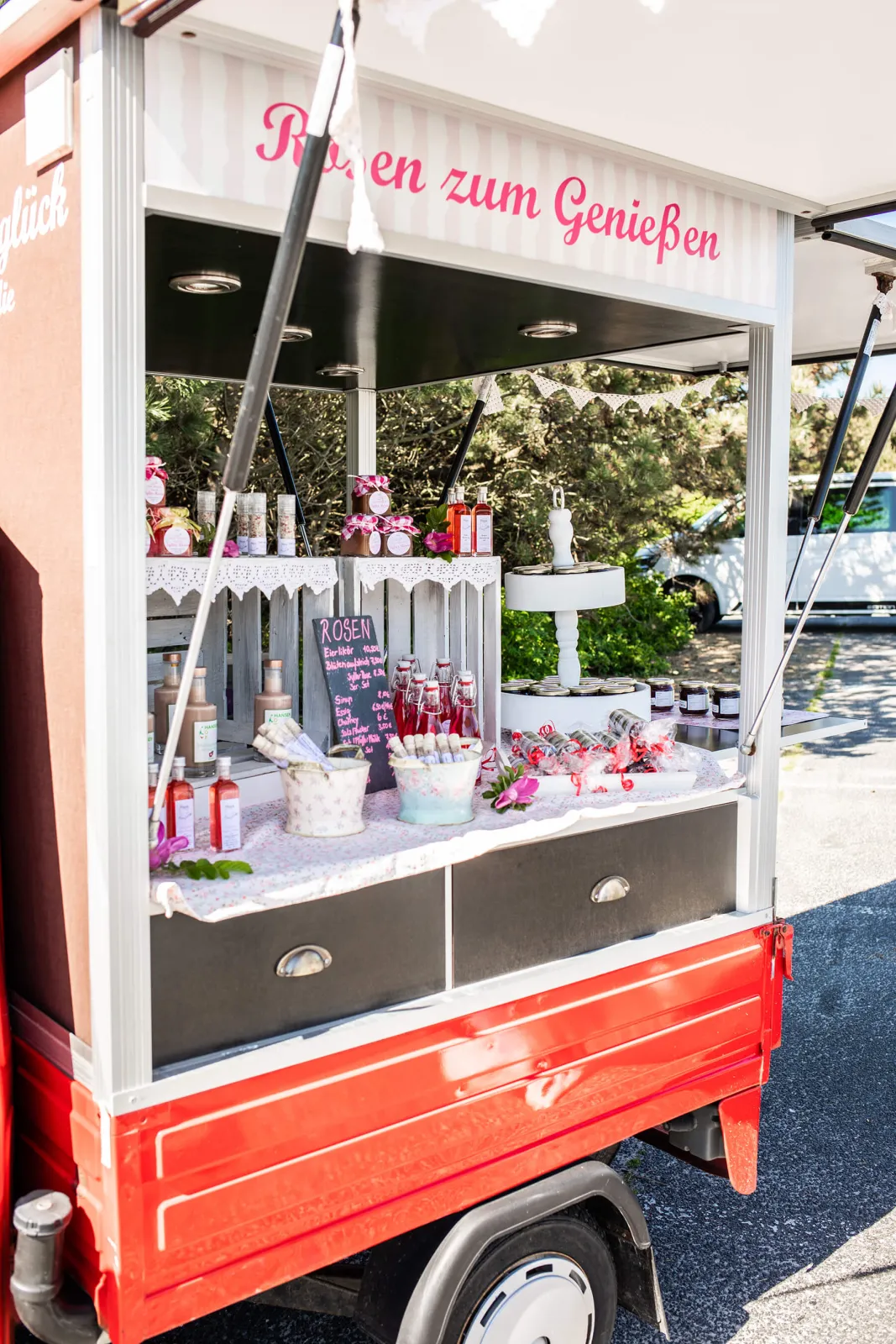Erst habe ich Sven nur dabei geholfen, die Rosenblüten zu sammeln. Dabei hat er mir erzählt, dass er niemanden findet, der seine Produkte verkaufen möchte. Das konnte ich gar nicht glauben, denn für mich gibt es nichts Schöneres als Wochenmärkte. Schon immer hatte ich den Wunsch meine eigenen Produkte auf einem Wochenmarkt zu verkaufen. Da ich im Mutterschutz war, hatte ich nun endlich Zeit dazu. So kam mir die Idee, meine eigenen Produkte herzustellen und auf dem Wochenmarkt zu verkaufen.