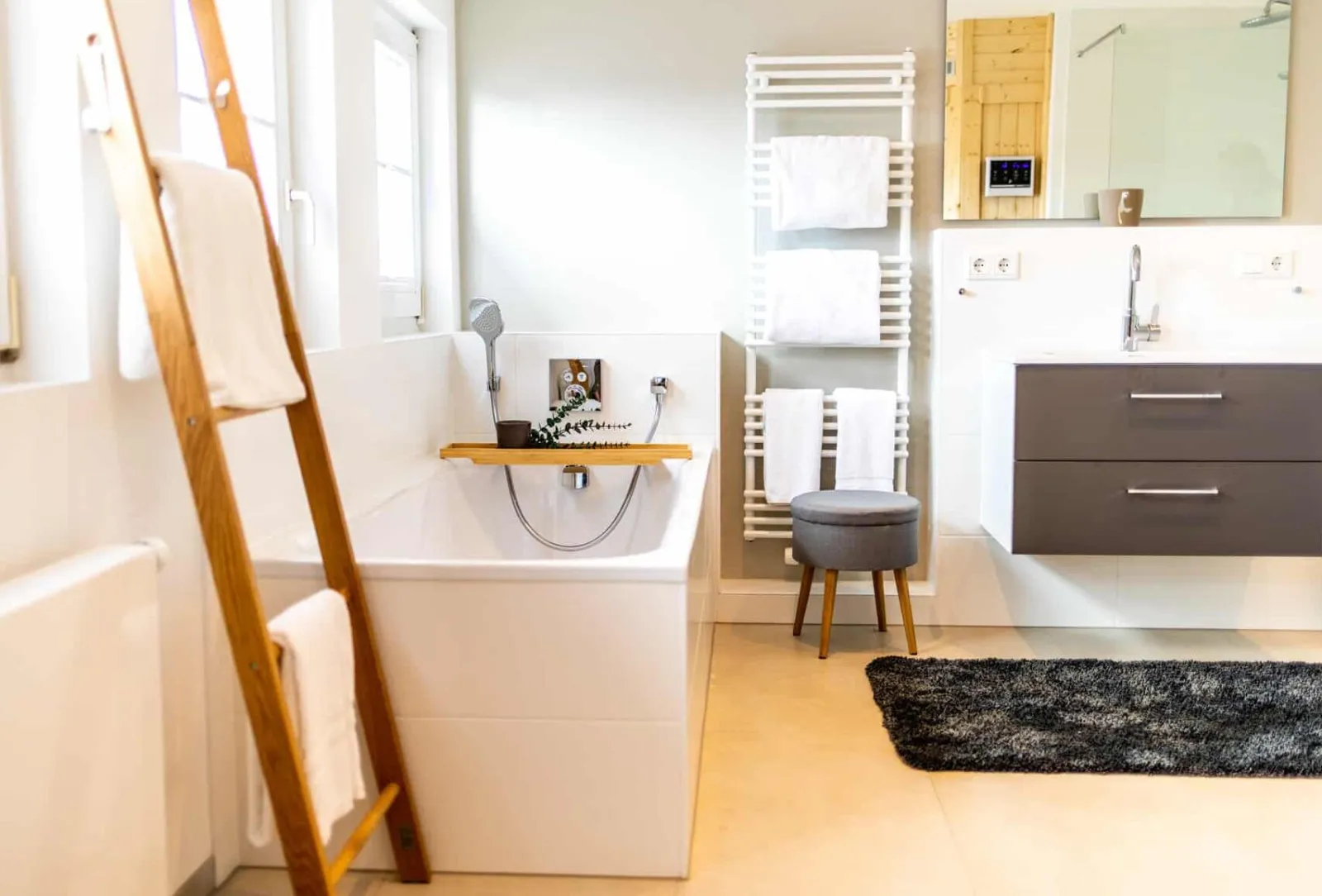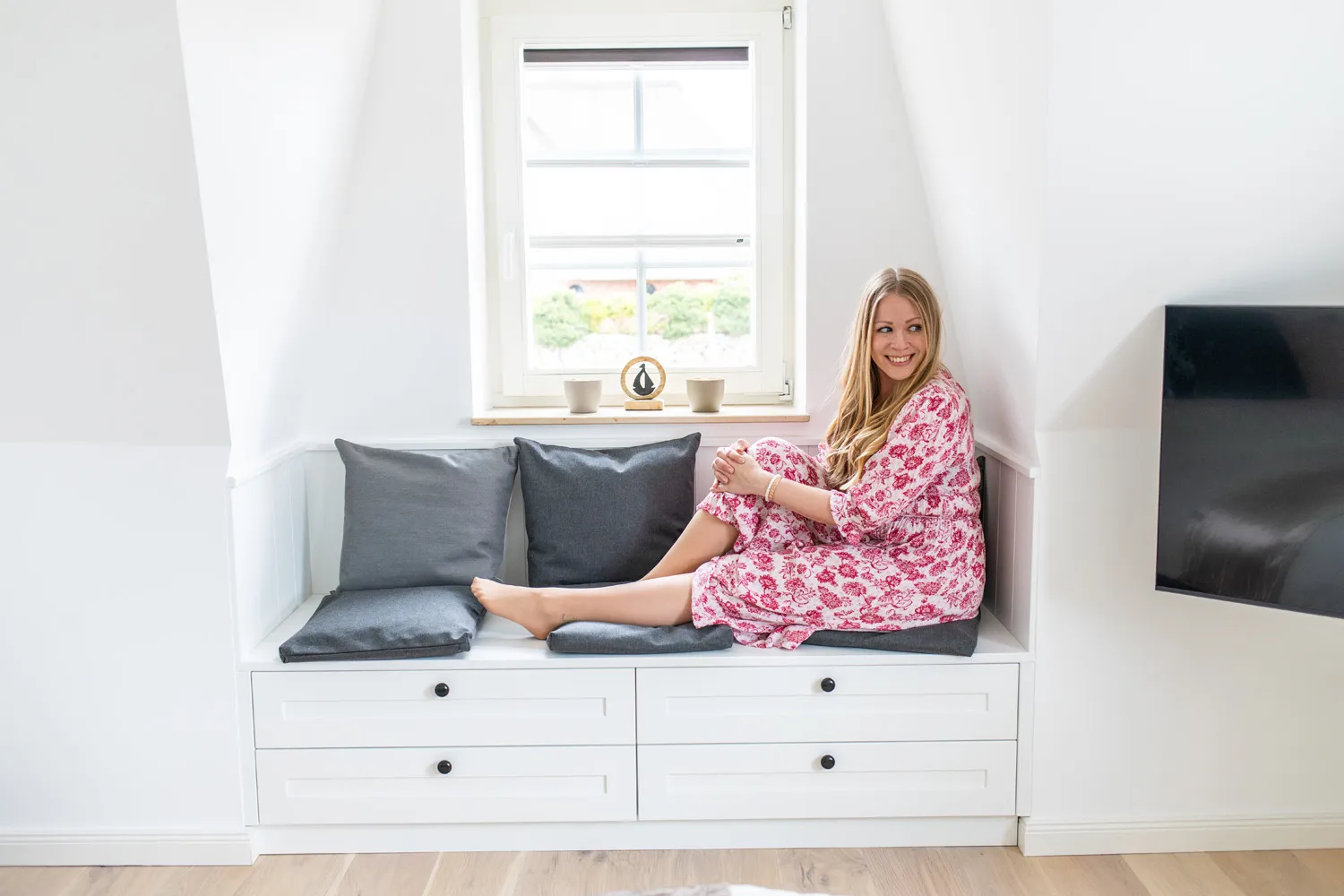 Dass auch das Sylt Seascape I sehr elegant und luftig eingerichtet ist, wundert mich kaum. Der offene Küchenbereich, die schicken Bäder und die wärmespendende Fußbodenheizung gefallen mir ebenfalls gut. Umgeben ist das Haus von einem typisch nordischen Friesenwall – so schön syltig!