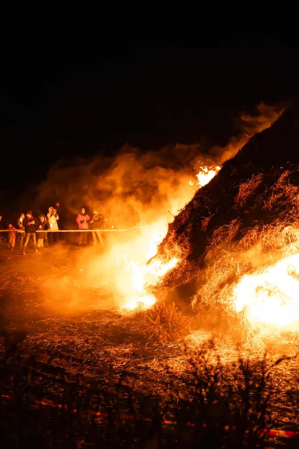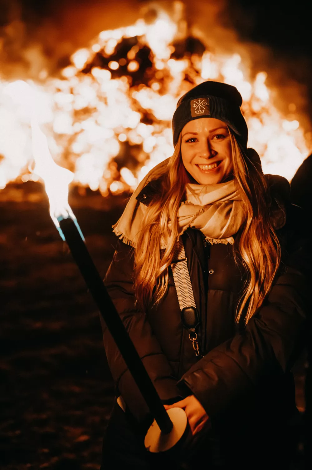 Anschließend stimmen Anwesenden gemeinsam die Sylter Hymne „Üüs Söl’ring Lön“ an. Dabei entsteht ein wirklich tolles Zusammengehörigkeitsgefühl. Wundere dich also nicht, wenn du dich plötzlich ganz heimisch fühlen solltest. So, als wärst du bereits seit Jahren ein festes Mitglied der Dorfgemeinschaft. Nach einer Weile stürzt endlich der Pidder in die Gluten. Das ist eine über dem Feuer thronende Strohpuppe oder vielerorts auch ein Holzfass. Damit ist es laut Brauch offiziell: Tschüss Winter, Hallo Frühling!