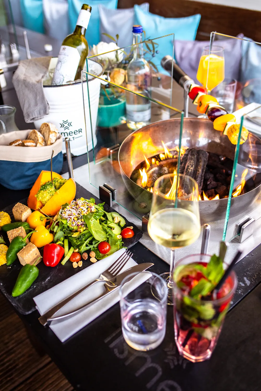 Lust auf ein veganes Barbecue? Das gibt es im Wintergarten des iismeer in Wenningstedt. Inklusive ist ein Spieß – wahlweise mit Gemüse und Mais oder mit Räuchertofu. Dazu kannst du dir zwei Beilagen (oder je nach Hunger auch mehr) bestellen wie zum Beispiel Feldsalat mit Trüffelvinaigrette, Rote Beete- oder Quinoasalat, Blattspinat mit Birne und Balsamico, gebackene Süßkartoffel mit Guacamole oder Kanarische Kartoffeln mit Mojo Verde Dipp. Wenn das nicht nach einem guten Grillabend klingt!