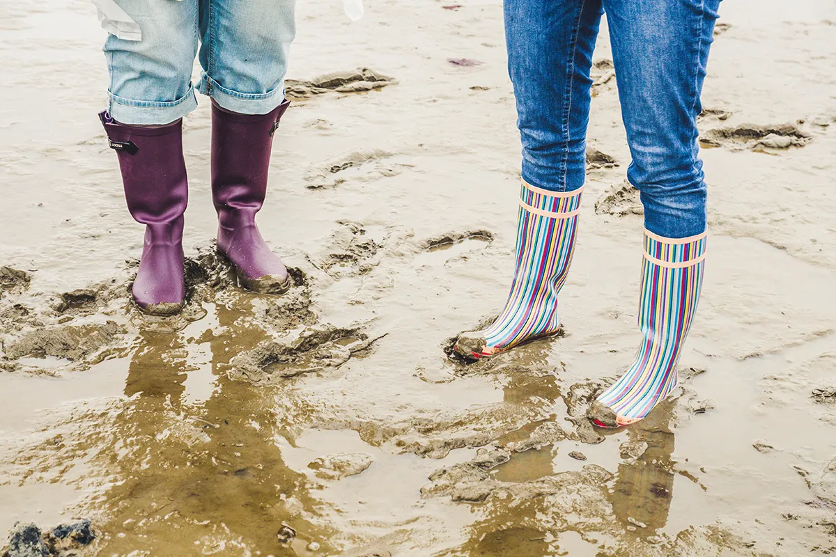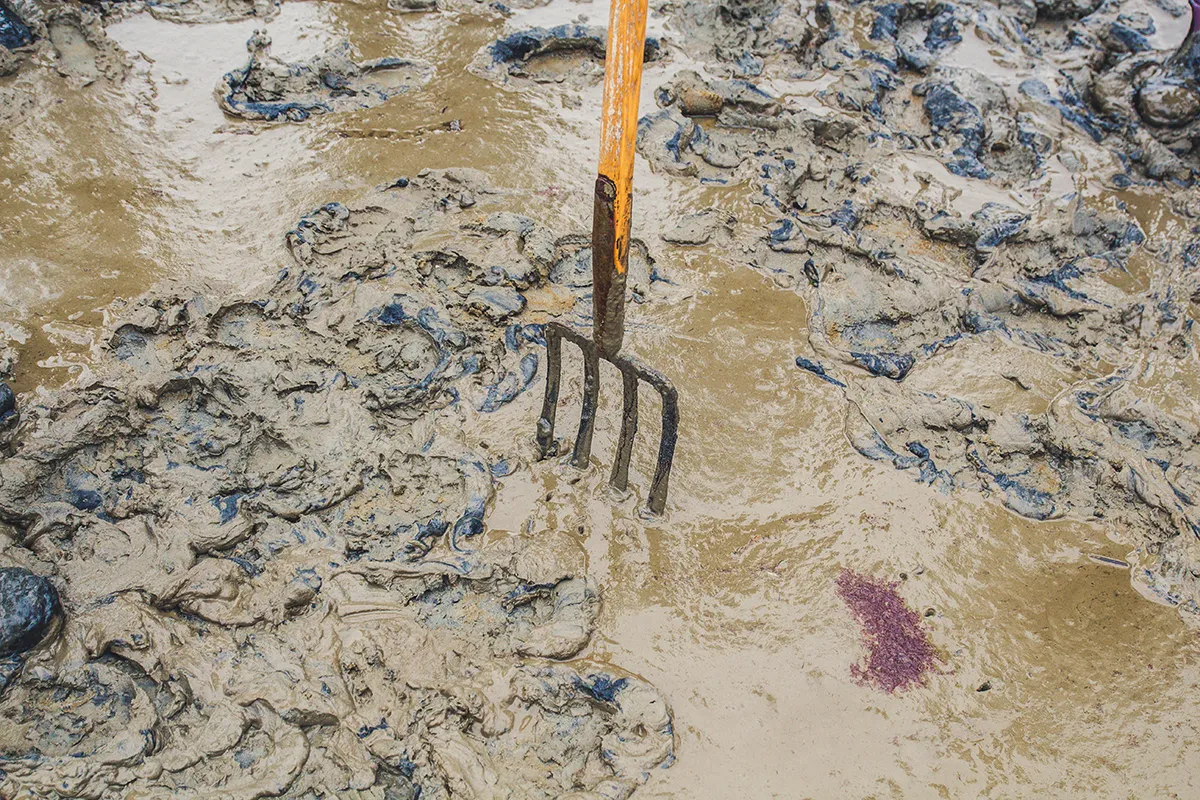 „Passt auf, dass ihr nicht stecken bleibt“, warnt uns Jan schelmisch, als wir einen besonders schlammigen Pfad passieren. Im Gänsemarsch und mit festem Griff an den Vordermann meistern wir den schlickigen Parcours. Meine Gummistiefel sinken tief in den Boden, und nicht selten rette ich mich gerade noch rechtzeitig vor einem unfreiwilligen Schlickbad.