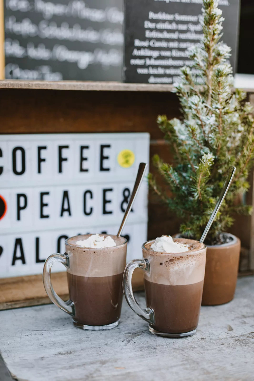 Doch irgendwann schreit mein Körper dann doch nach einem warmen Getränk, um wieder aufzutauen. Zu meiner Freude hat die Crêperie am Meer gerade geöffnet und bietet eine Auswahl an Heißgetränken von Tee bis Glühwein an. Für Sina und mich soll es aber eine heiße Schokolade mit Sahne sein. Die genießen wir auf einer der Bänke mit herrlichem Blick auf die Nordsee. Mein Tipp: Das neue Deli „Zur Goldenen Möwe“ hat in der Galerie am Meer neben der Musikmuschel ein „Winter-Wohnzimmer“ errichtet.