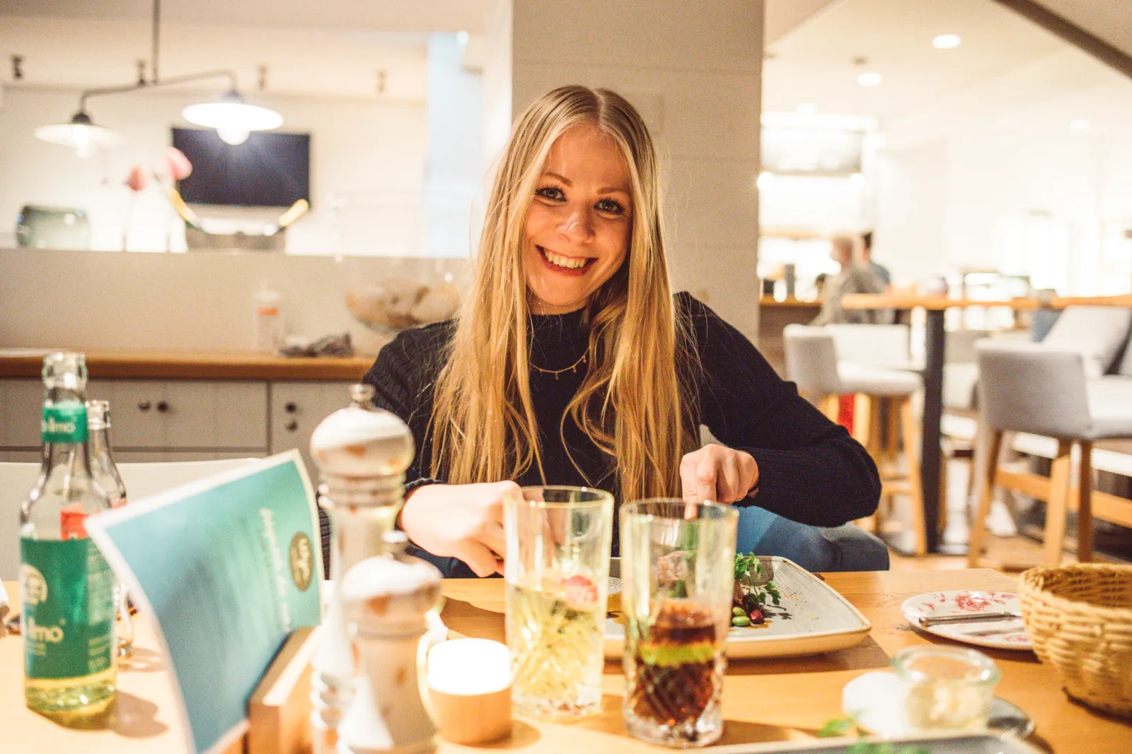 Kulinarisch hat das Wyn mich ebenfalls überrascht. In der Kitchen.Bar wird nämlich nicht nur ein abwechslungsreiches Frühstücksbüffet am Morgen angeboten, sondern auch ein täglich wechselndes Abendmenü mit Vorspeisen, verschiedenen Hauptgerichten und Desserts. Was ich besonders cool finde: Die Speisen sind inspiriert von den besten Surfer Hotspots der Welt. Passend dazu ist auch die vielseitige Weinauswahl zusammengestellt. Je nach Wetter und Jahreszeit kannst du übrigens auch auf der schönen Außenterrasse Platz nehmen.