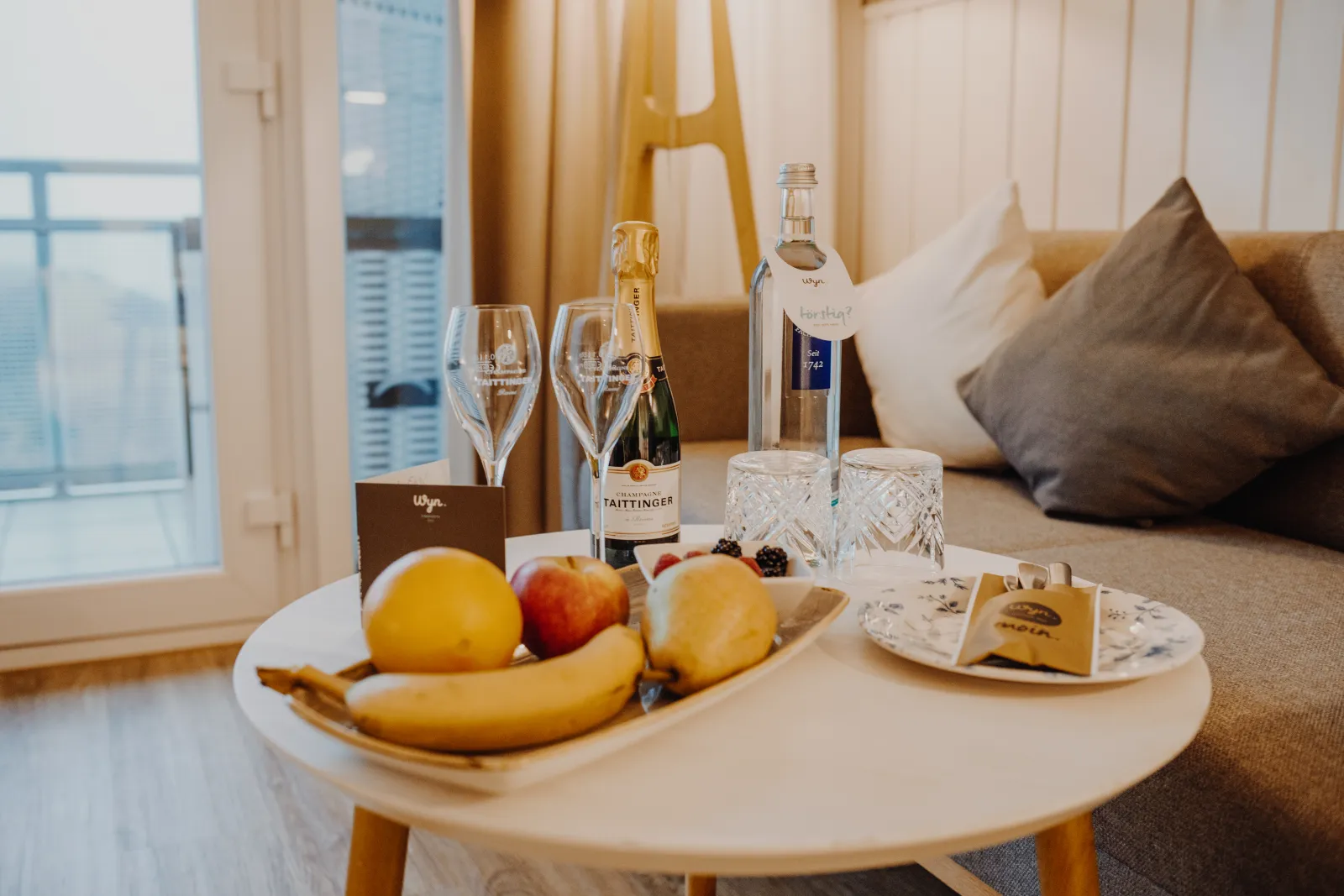 Auf dem Balkon wartet sogar ein eigener Strandkorb auf mich! Näher an der Nordsee kann man auf Sylt fast schon gar nicht wohnen. Für mich gibt es nichts Schöneres, als mit offenem Fenster zu schlafen, um mich vom Meeresrauschen in den Schlaf wiegen zu lassen und am morgen direkt die Meeresbrise von der frischen Nordsee zu inhalieren. Alleine das würde mich schon glücklich machen. Doch das Wyn hat noch einiges mehr zu bieten als die 1A-Lage.
