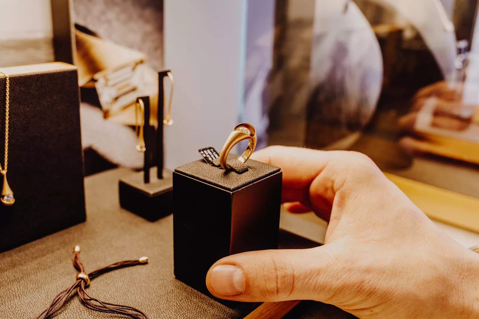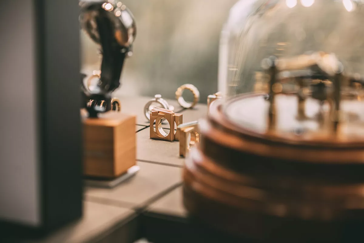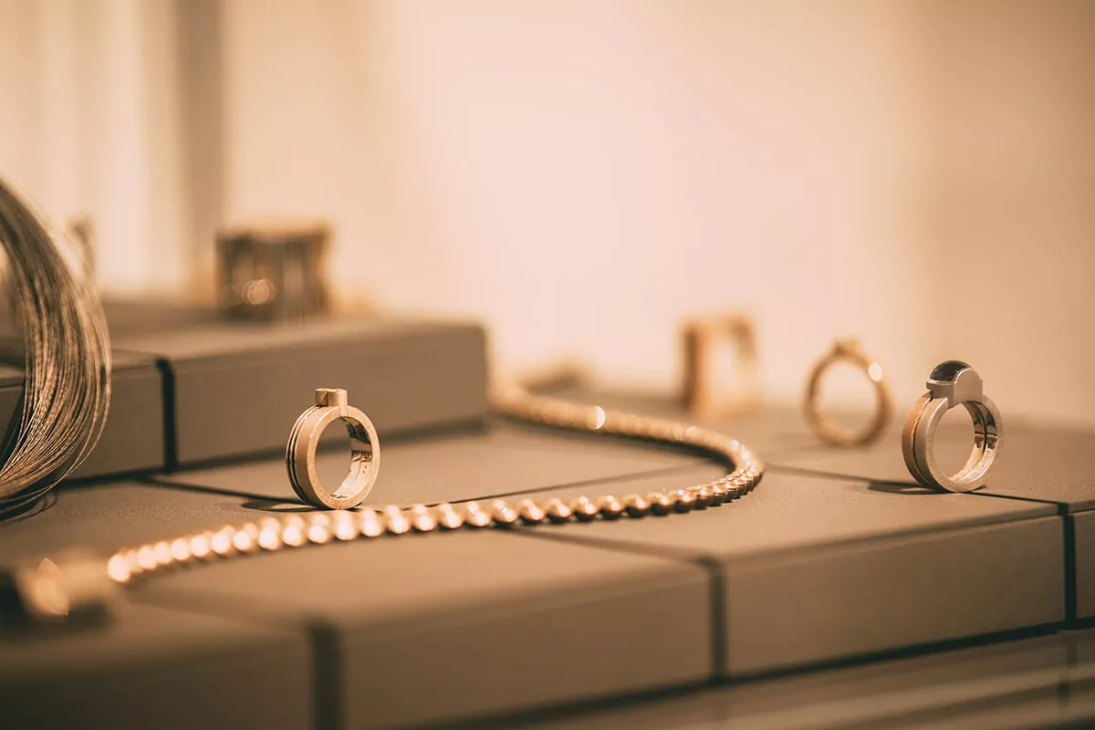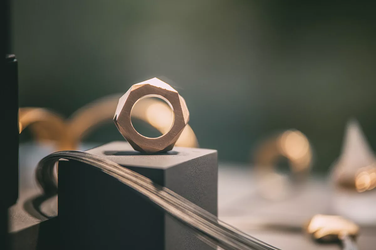 Während mir Heike die unterschiedlichen Formen zeigt, fällt mir wiederum der ungewöhnliche Ring an ihrer Hand auf. „Der Ring ist Teil unserer Schmuckreihe TORUS8. Diese ist inspiriert durch die mathematische Formel zur Beschreibung des sogenannten Möbiusbandes. Das heißt, der Ring hat den Verlauf eines harmonischen Bandes, das weder oben und unten noch innen und außen kennt – sozusagen unendlich ist“, erklärt sie mir. Eine sehr schöne Bedeutung, wie ich finde.
